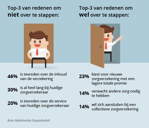 De vraag of je wel of niet moet overstappen, hangt niet alleen af van de kosten. Ook de serviceverlening, de inhoud van de zorgverzekering, en de zorgverleners waar je terecht kunt, zijn van belang. Ter inspiratie volgt de top 3 redenen van mensen om wel of niet te wisselen: