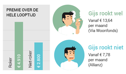 De vraag of roken duur is voor de maatschappij, wordt nog wel eens betwist. Verstokte rokers maken over het algemeen meer zorgkosten, maar niet-rokers trekken veel langer AOW. Als het om persoonlijke verzekeringen gaat, hoeft er geen discussie te bestaan over een premieopslag. Omdat rokers een grotere kans hebben om vroeg te overlijden, betalen zij meer om dat specifieke risico te verzekeren.