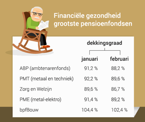 De financiële situatie bij pensioenfondsen als ABP en Zorg en Welzijn is in februari verder achteruit gegaan. Met de huidige rente als maatstaf, hebben ze te weinig inkomsten voor jouw toekomstige pensioenuitkering. Dit vereist straffe maatregelen.Â