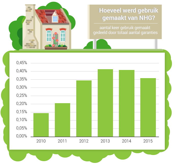 In 2013 werd er door 0,4% van de mensen met een NHG-hypotheek hulp ingeroepen. Anders gezegd deed ongeveer 1 op de 250 mensen een beroep op de garantie. Ter vergelijk: in 2010 was het nog ongeveer 1 op de 700. Inmiddels daalt het aantal gedwongen verkopen weer. In 2015 deed 1 op de 280 mensen een verzoek om hulp van NHG.