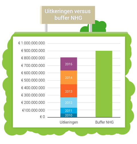 Inmiddels is de buffer bij NHG zo hoog dat er per direct 23.000 Nederlandse gezinnen geholpen zouden kunnen worden met een restschuld. Is dat voldoende, zul je je wellicht afvragen? Ja! Dat is ruim voldoende. In de afgelopen zes jaren, 2010 tot en met 2015, werden in totaal maar 20.700 uitkeringen gedaan. Die zes crisisjaren (!) zouden we met de huidige buffer dus gemakkelijk kunnen betalen.