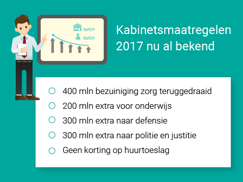 De eerste kabinetsplannen 2017 zijn bekend. Een opvallend lijstje plannen, met name door de onderwerpen die ontbreken. Over het eigen huis, de hypotheek, pensioen of zorgverzekering wordt niet gesproken. Wat ook opvalt: grootgewichten Klaas Knot (DNB) en Minister Dijsselbloem van Financiën spraken zich onlangs positief uit over maximaal 90% hypotheek. Maar minister Blok van Wonen zegt nu precies het tegenovergestelde. Het lijkt met name één ding te betekenen: de verkiezingsstrijd 2017 is begonnen.