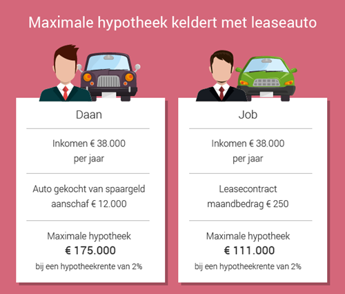 Je kunt al een Volkswagen of Toyota rijden voor iets meer dan 200 euro per maand. Dan koop je de auto niet, maar je least hem. Alleen de benzine betaal je zelf. Dat klinkt aantrekkelijk, totdat je een hypotheek gaat sluiten. Dan blijkt je leasecontract een loodzwaar blok aan je been. Ben je van plan een huis te kopen? Dan liever niet privé een auto leasen.