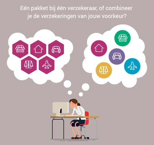 Wat is wijsheid? Sluit je al je verzekeringen bij dezelfde partij af, of stel je zelf een mooi boeketje samen? Voor beide manieren valt iets te zeggen. Verzekeraars geven je meestal korting als je meerdere verzekeringen bij hen afsluit. Aan de andere kant heb je minder vrijheid om per verzekering te kiezen welke het best aansluit op jouw situatie.