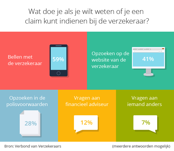 Of een verzekeraar de schade vergoedt, moet dan blijken uit een telefoontje met de maatschappij (59%) of via een speurtocht op de website van de verzekeraar (41%). Slechts 28% slaat zelf de polisvoorwaarden open.Â
