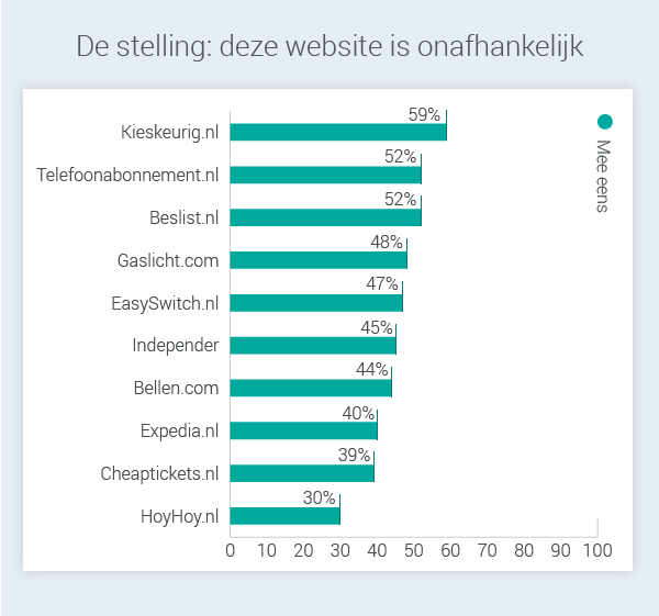 Onderzoeksbureau Vostradamos onderzocht recent hoe we in Nederland aankijken tegen vergelijkingssites. Vergelijkers van verzekeringen en andere financiële diensten scoren daarbij slechter dan gemiddeld. Vooral op het gebied van onafhankelijkheid doen ze het slechter dan meer algemene vergelijkers als Kieskeurig.nl en Beslist.nl.