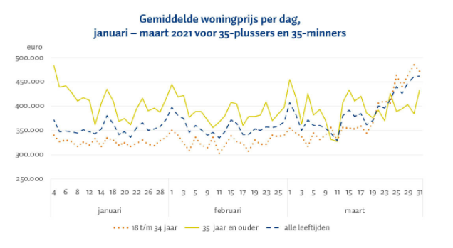 De vrijstelling van overdrachtsbelasting voor 35-minners is na de introductie aangescherpt. Sinds april geldt de aanvullende regel dat de woning niet duurder mag zijn dan €400.000. Het gevolg was een uitzonderlijke stijging van de gemiddelde woningprijs onder jonge kopers. De gemiddelde koopsom in de groep 35-minners steeg in eerste kwartaal 25% ten opzichte van hetzelfde kwartaal vorig jaar. Duurdere type woningen waren duidelijk in trek!