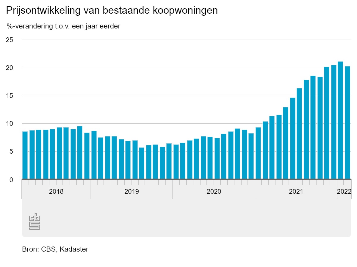 De vraag is of én wanneer bovenstaande zaken vat krijgen op de woningprijs. Ondanks de stijging kan je nu een hypotheek afsluiten met een rentevast termijn van 20 jaar onder de twee procent. In historisch perspectief nog altijd een lage rente. Ook is het niet de verwachting dat er snel verbetering komt in de schaarste aan beschikbare en betaalbare koopwoningen.